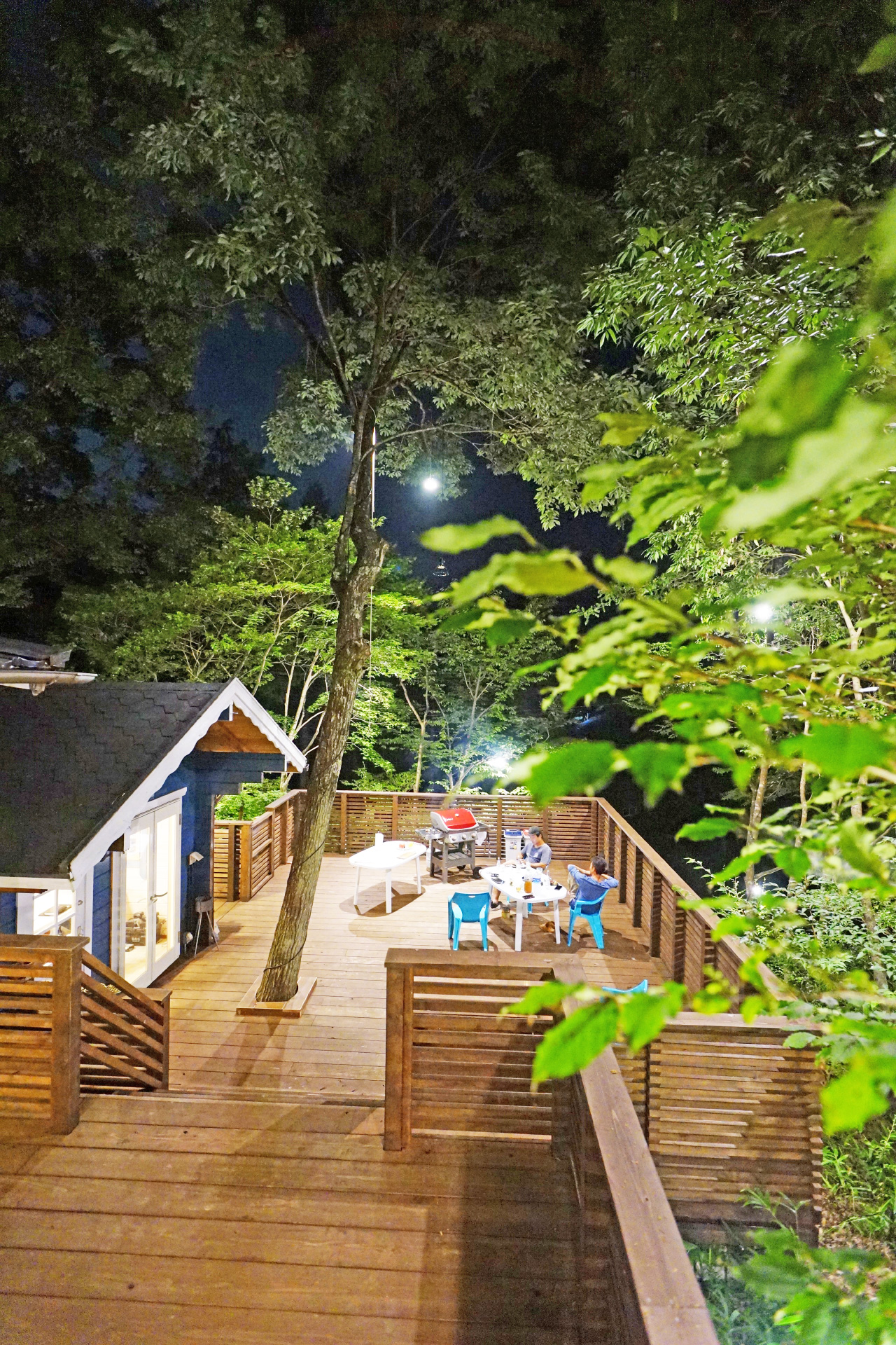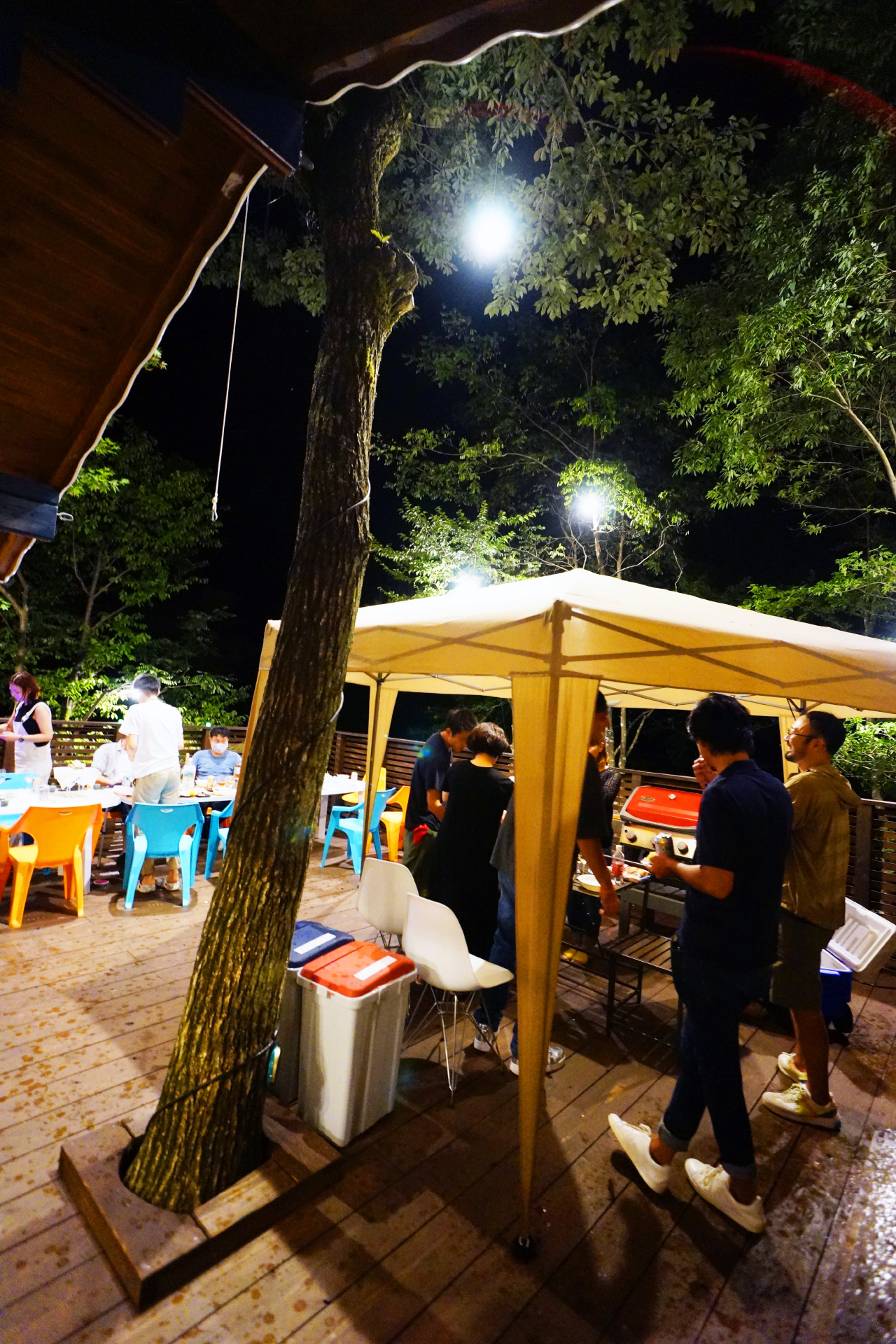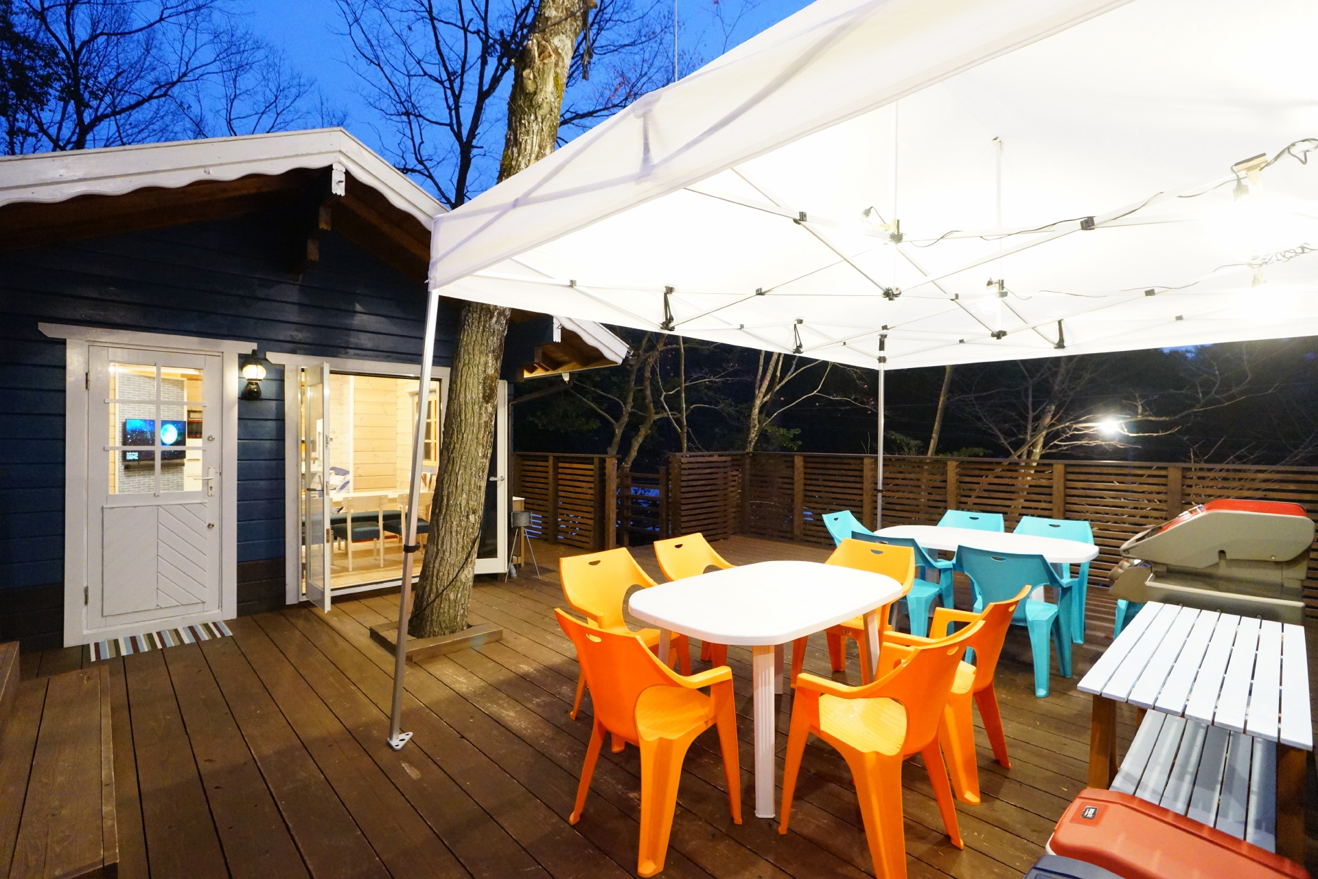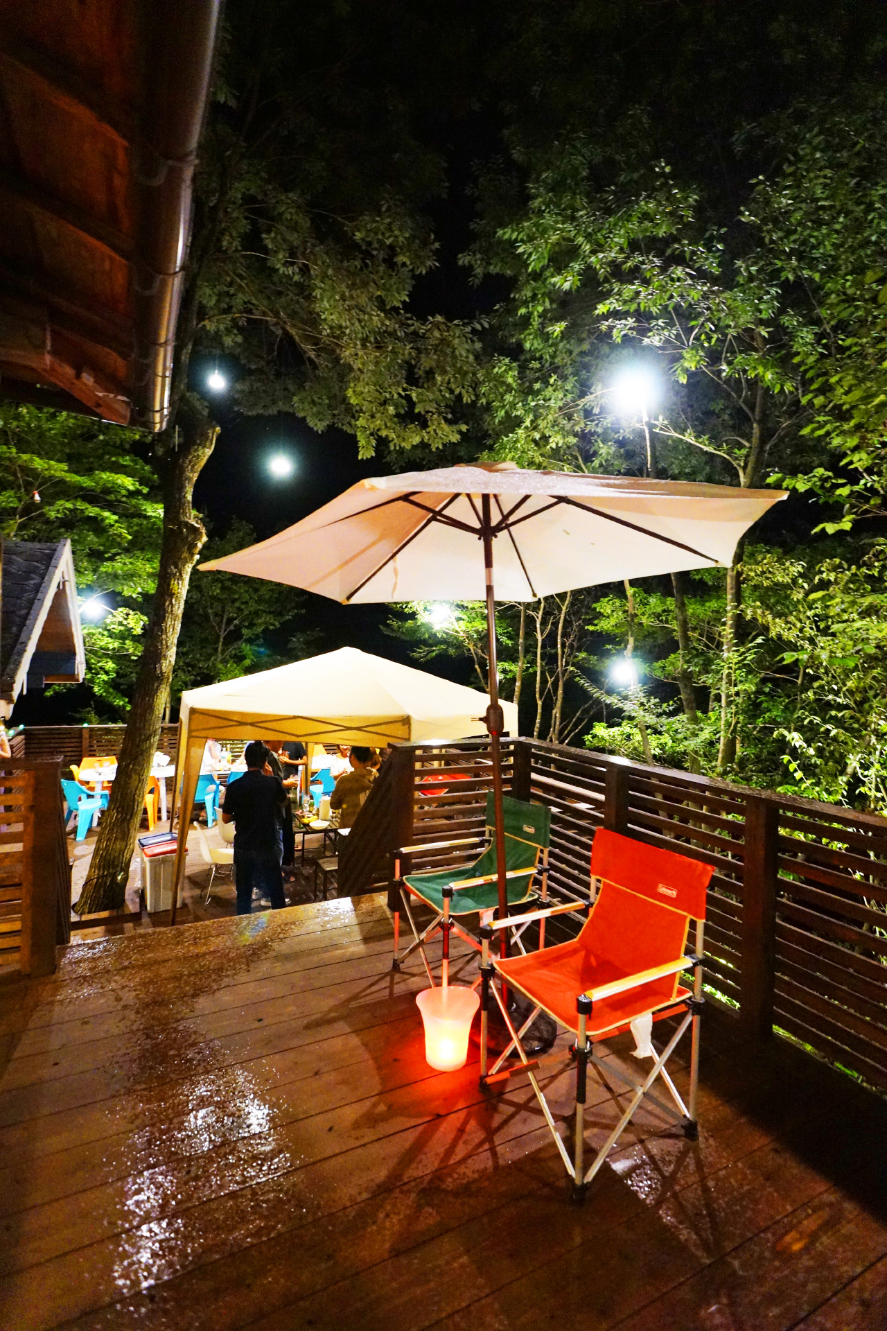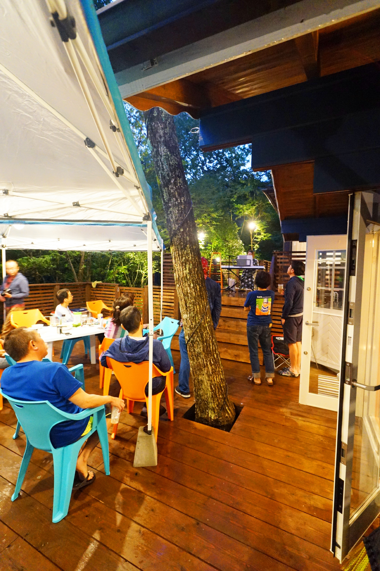 ・夜でも明るい ウッドデッキ の照明で食べ明かしたり