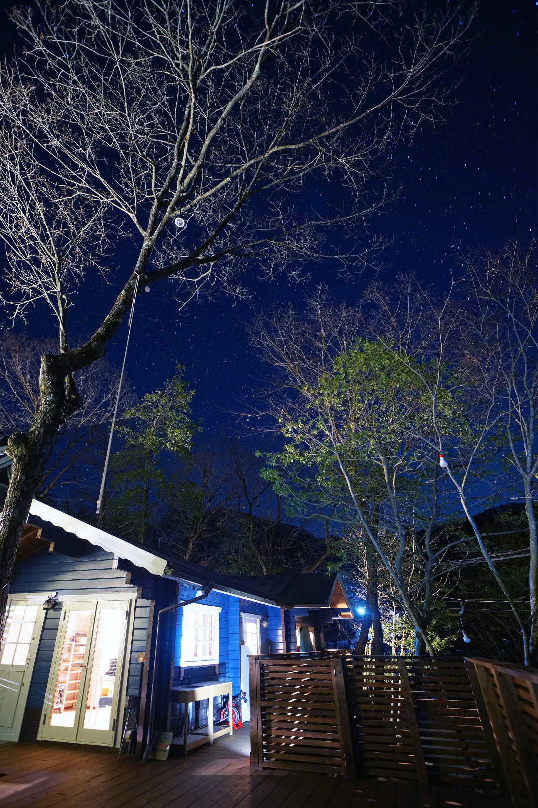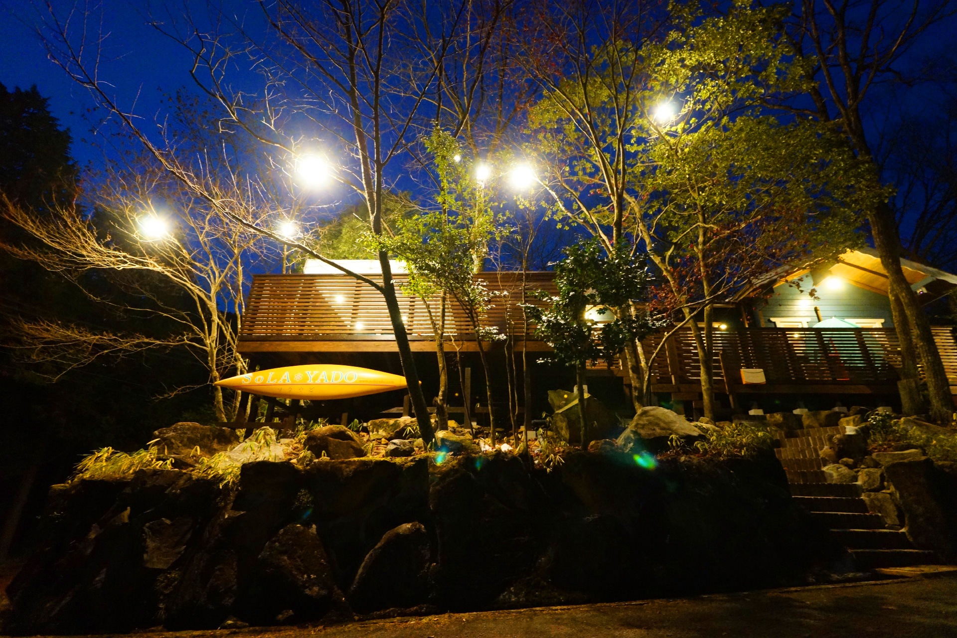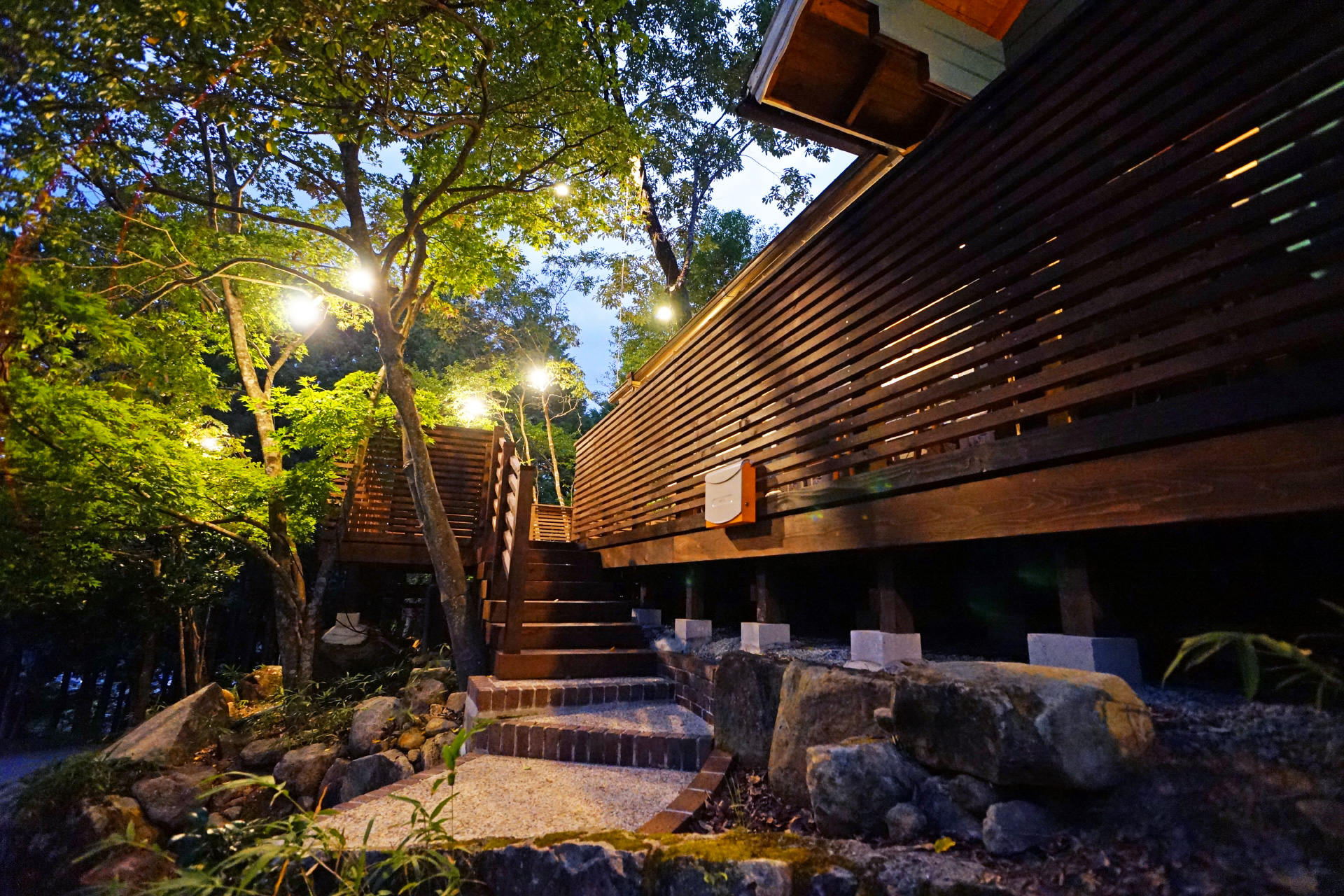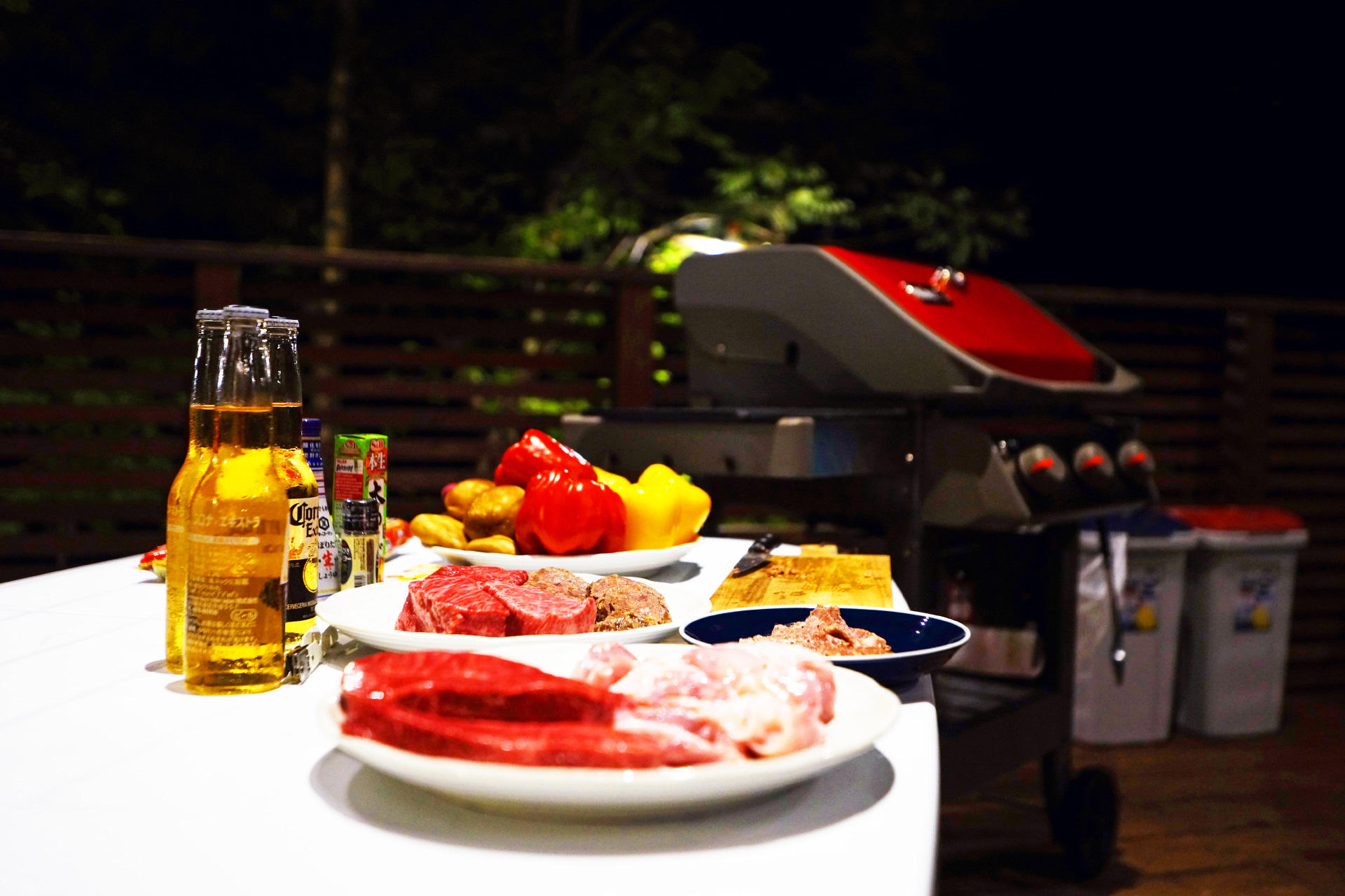 ・夜でも明るい ウッドデッキ の照明で食べ明かしたり