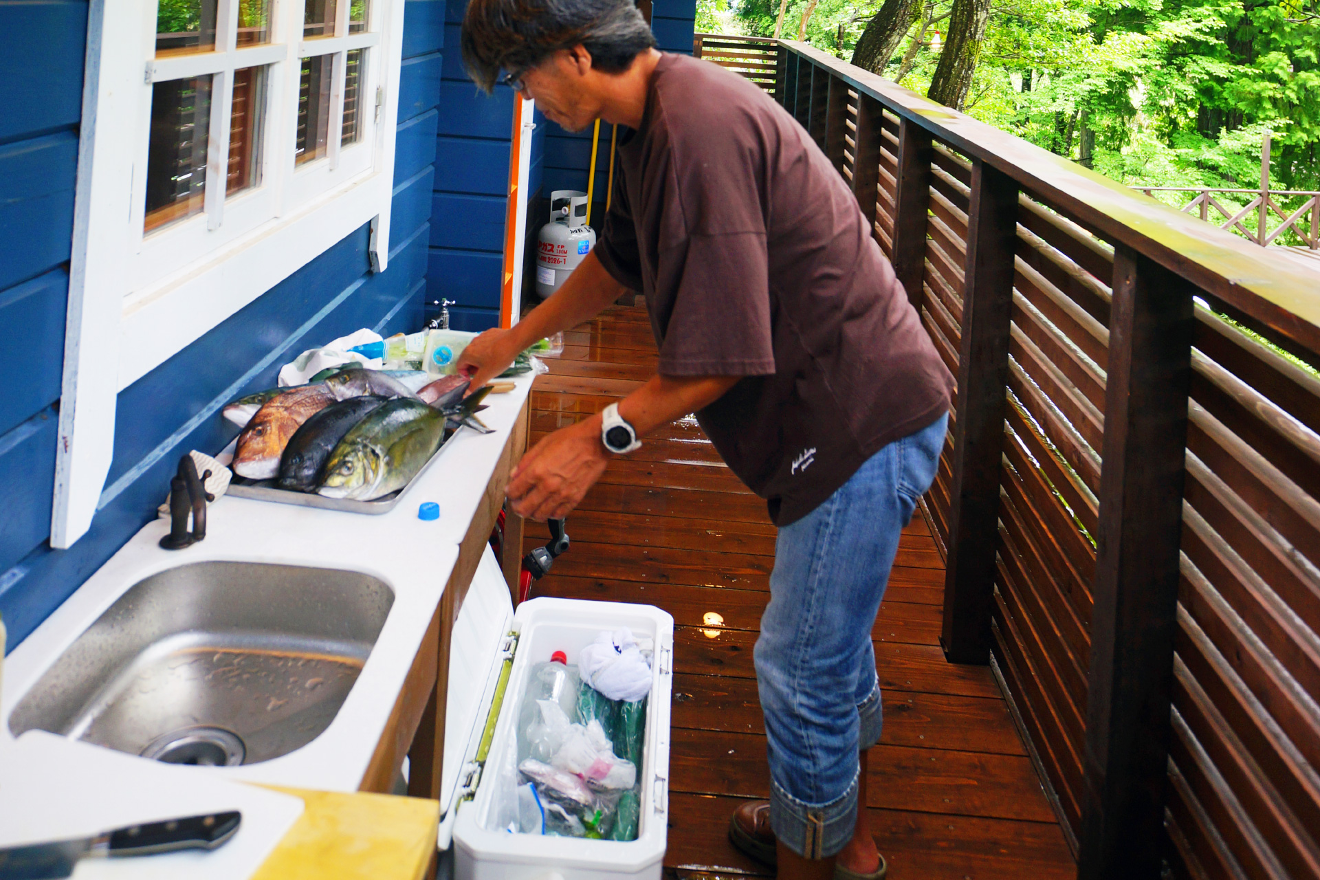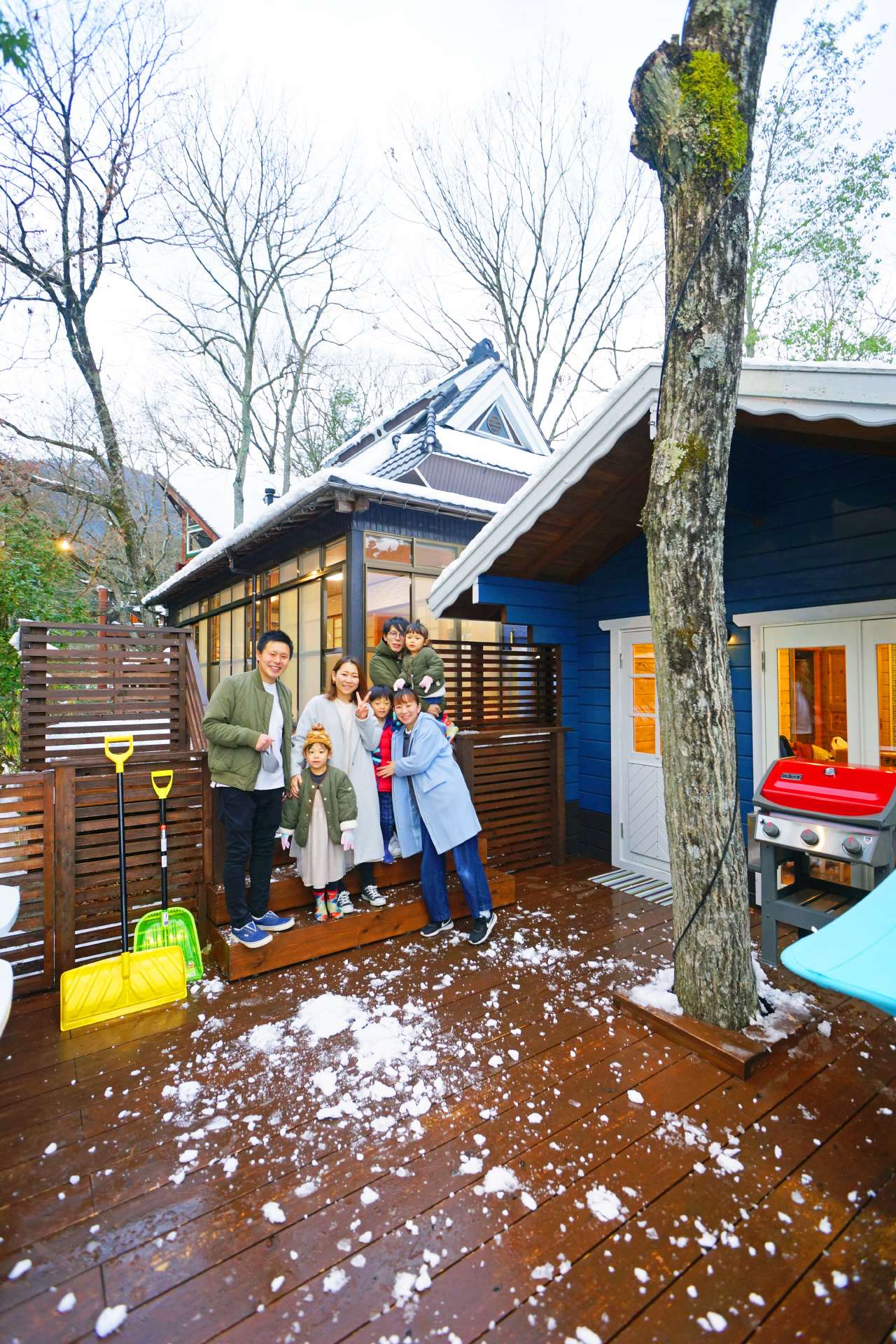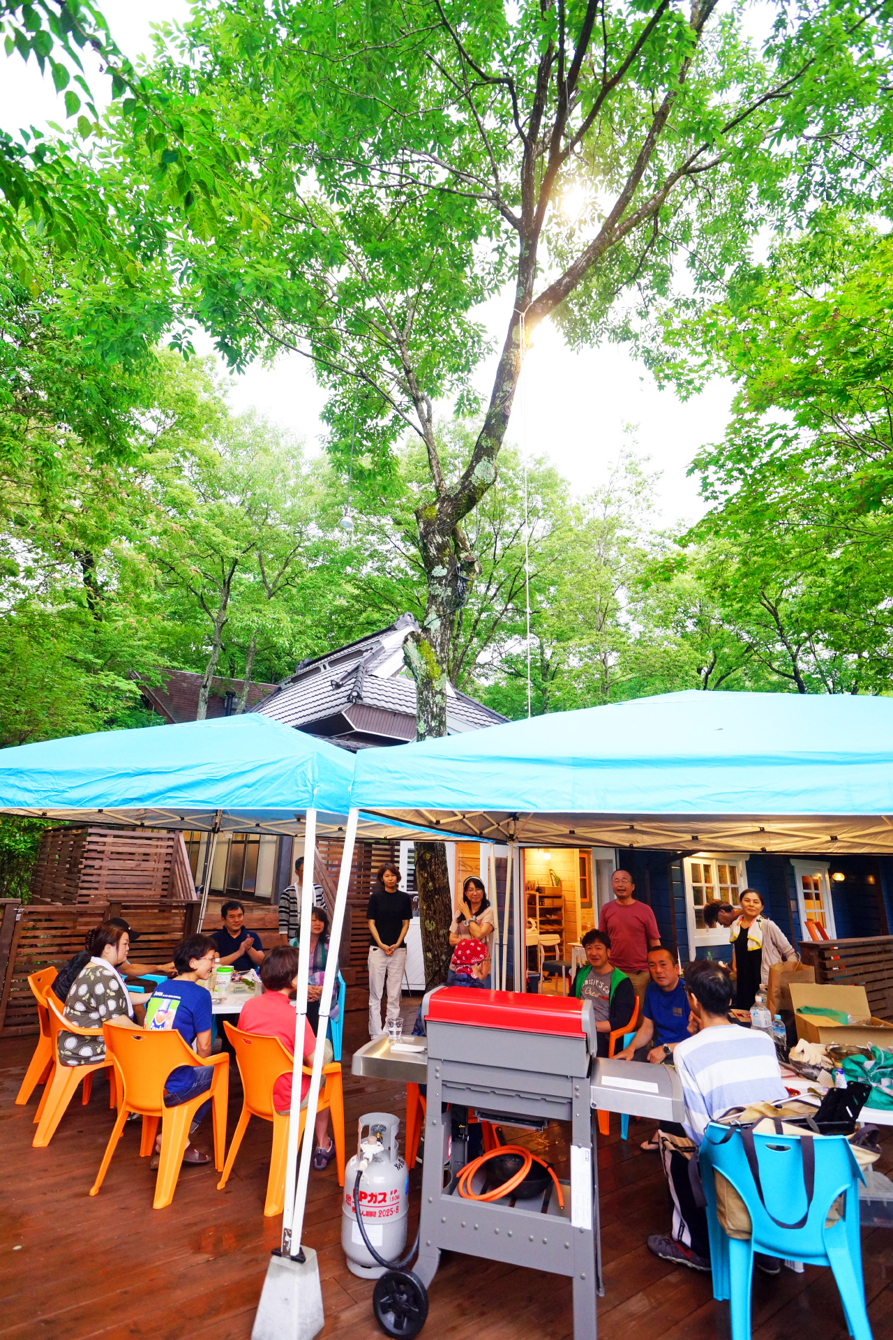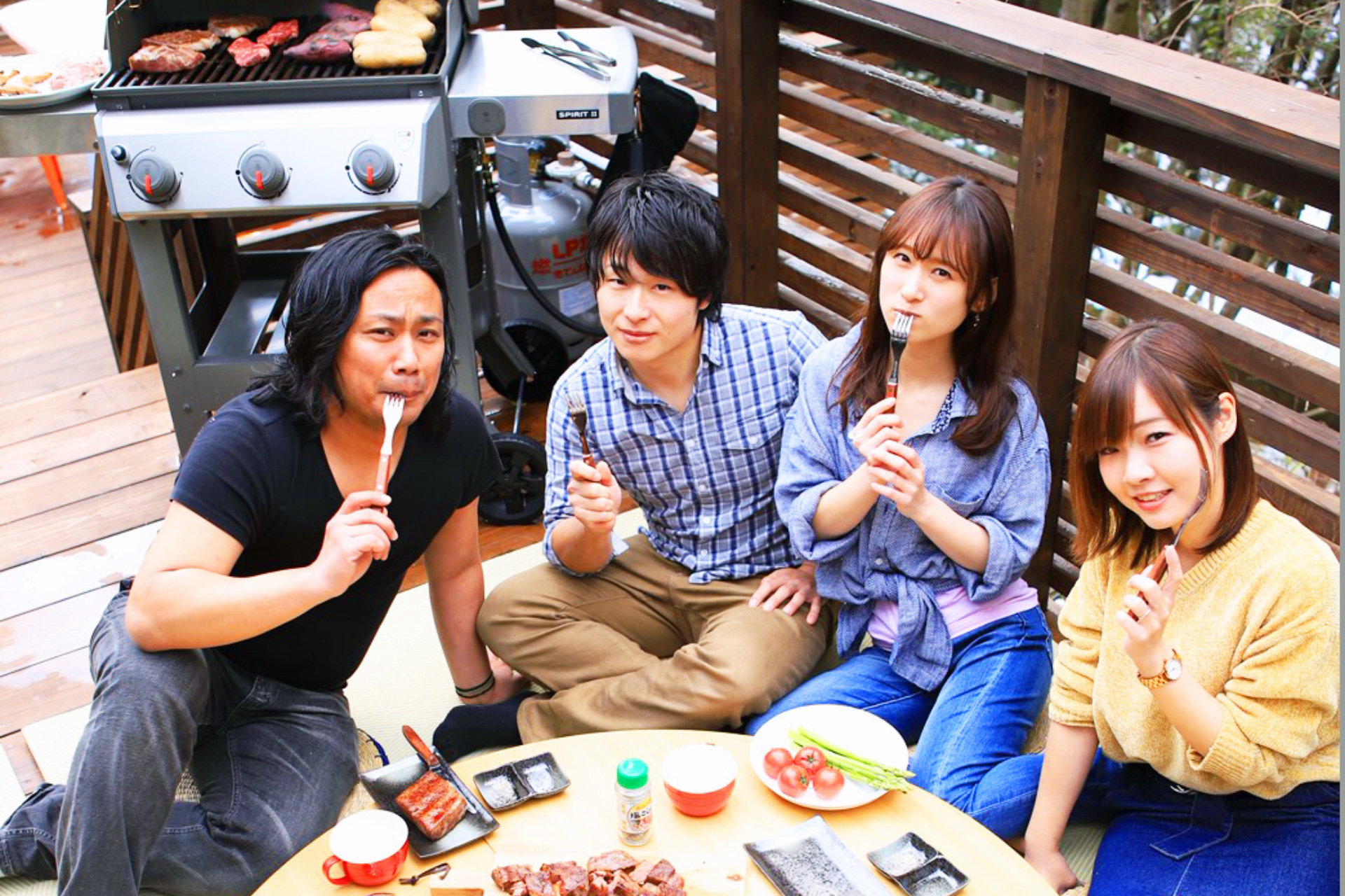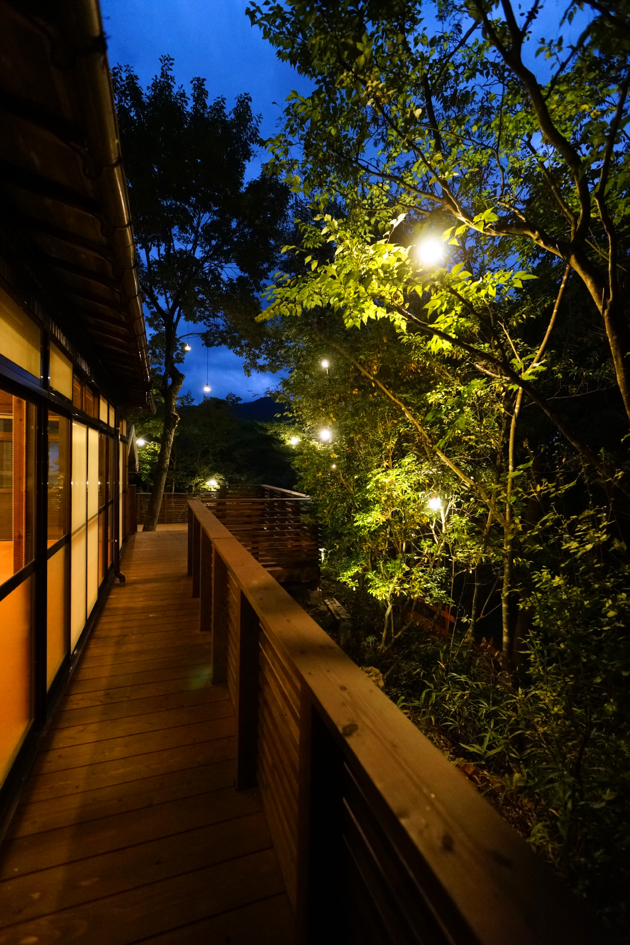 ・夜でも明るい ウッドデッキ の照明で食べ明かしたり
