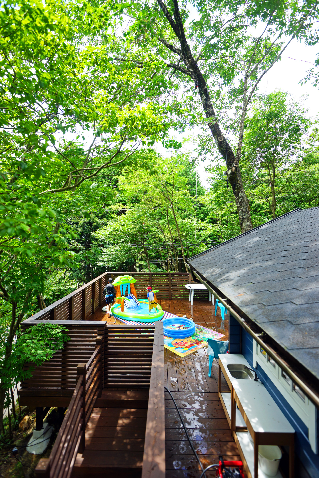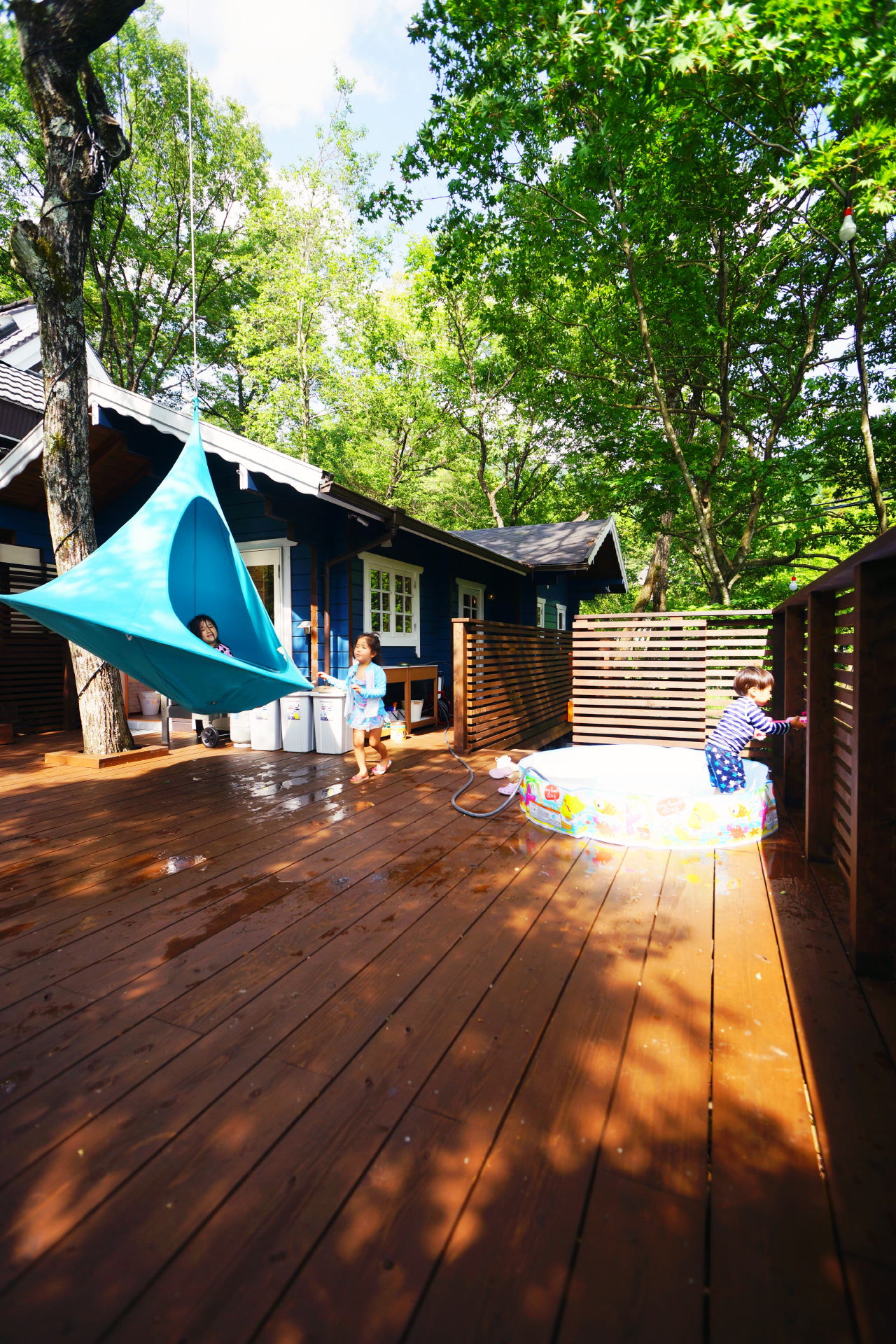 ・夏はプールを広げて子供達と水遊びしたり